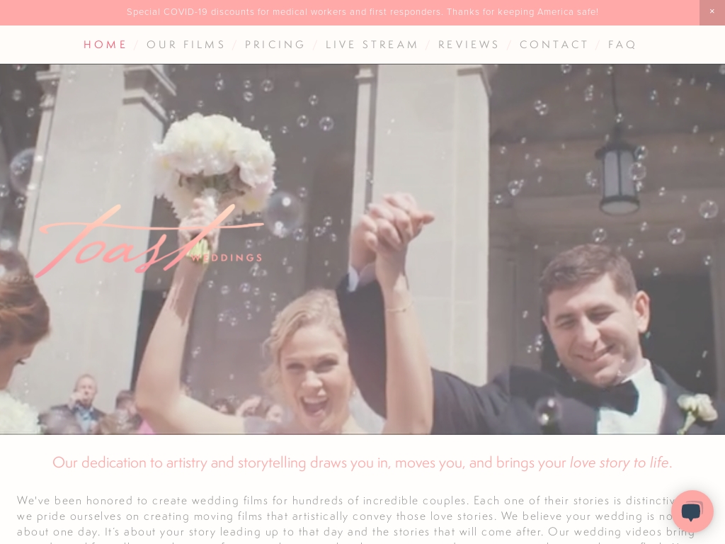 Toast Wedding Films General Product Details Planning Process Filming Process Drone Editing Process Delivery Lets find you an answer General Product Details Planning Process. Weve been honored to create wedding films for hundreds of incredible couples since 2014. The team was so incredibly easy and friendly to work with I highly recommend choosing Toast Wedding Films.